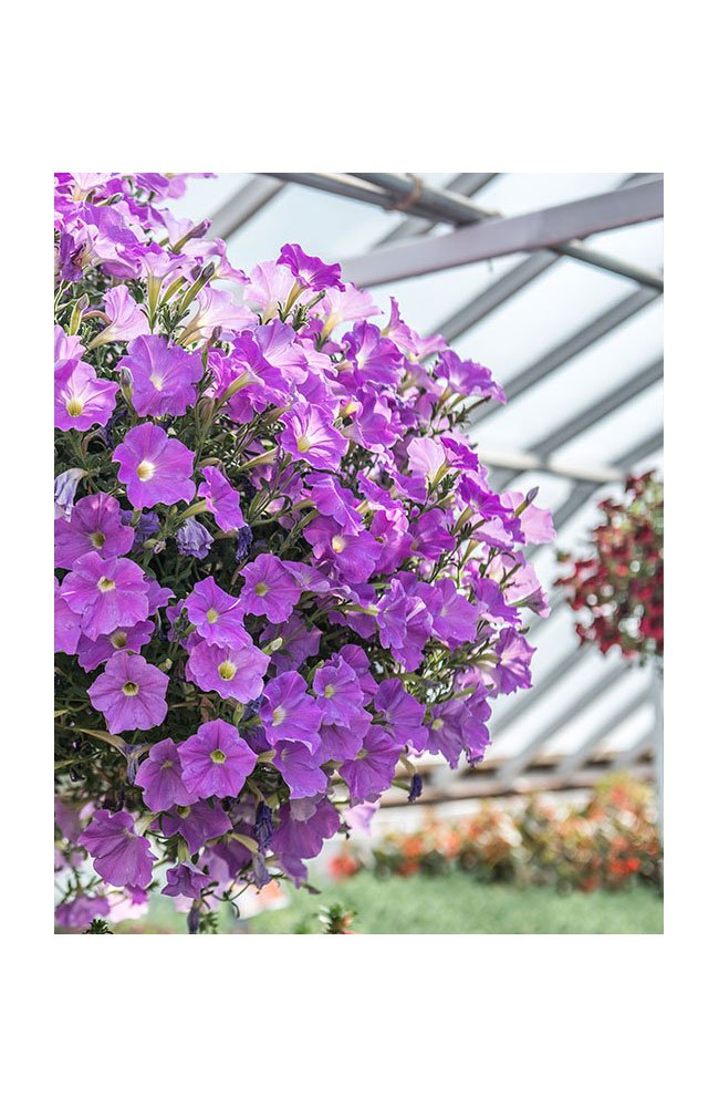 Our large fiber baskets require 1-2 gallons of water EACH DAY! Make them happy and they’ll keep growing and growing. Have questions? Come, visit our greenhouse where we chat with the customers almost as much as we do with our plants.
