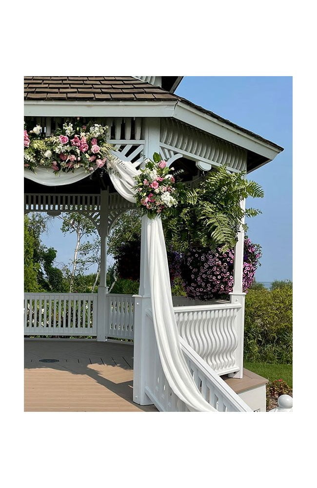 We are the preferred florist for Mackinac Island’s Mission Point Resort. In fact if you visit Mission Point, there’s a good chance you’ll see Samantha setting up for a wedding. Congratulations to Katie and Riley and also to 97 Films for filming their lovely lakeside wedding and our flowers!